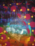 Works on paper are produced by layering mixed media materials such as: ink, pigment and gouache. Techniques include: resist, print and drawing techniques. All images are one off.